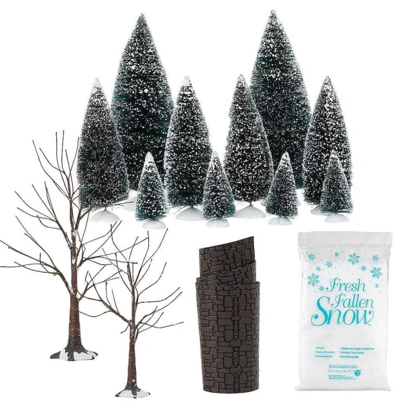 This Set Of 14 Landscape Kit Is A Perfect Starter Set To Get Your Village Up And Running. Includes 10 Assorted Sisal Trees, 2 Frosted Bare Branch Trees, 1.5 Oz Bag Of Snow And A Cobblestone Road.